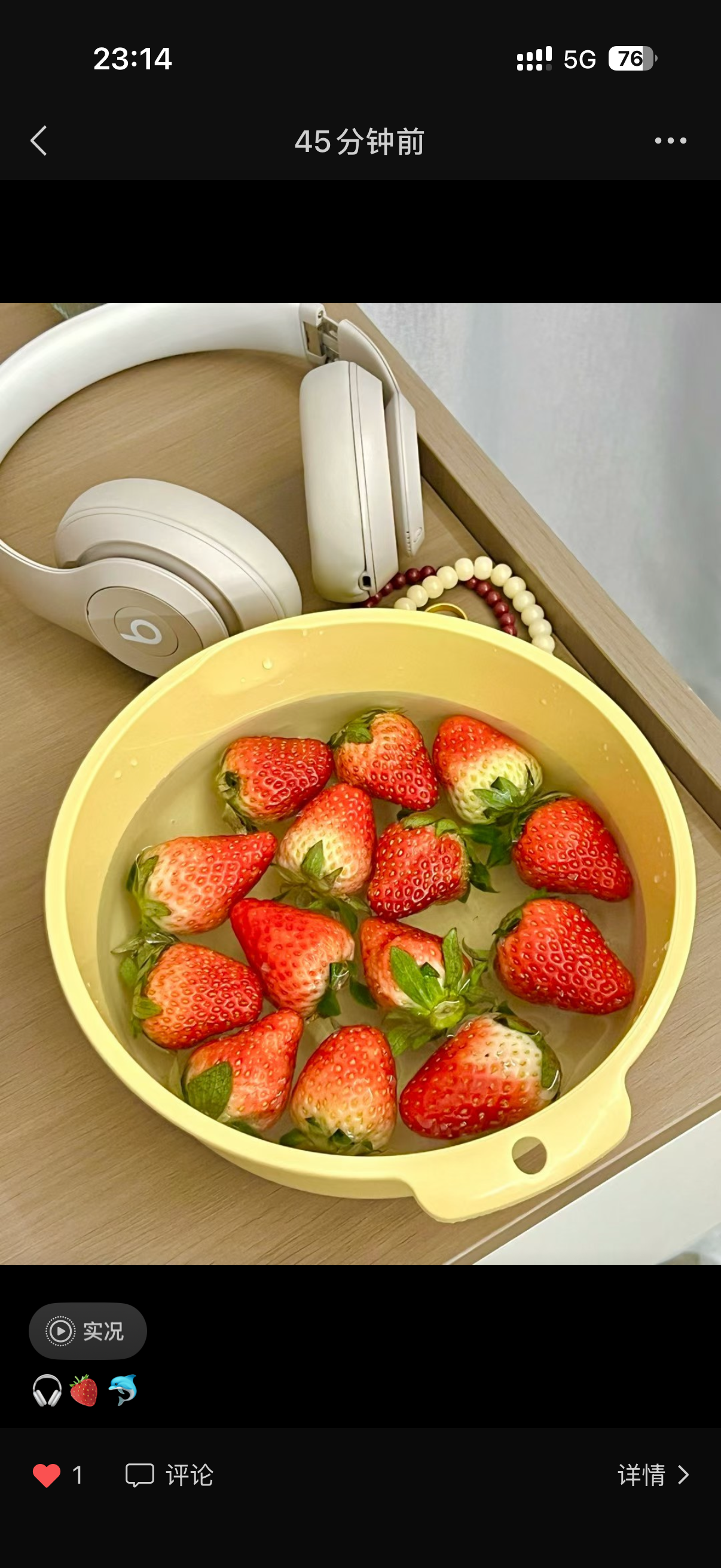 明岩的新包和草莓。明岩想吃寿司没要我的经费,那我给她攒着,到时候一块给